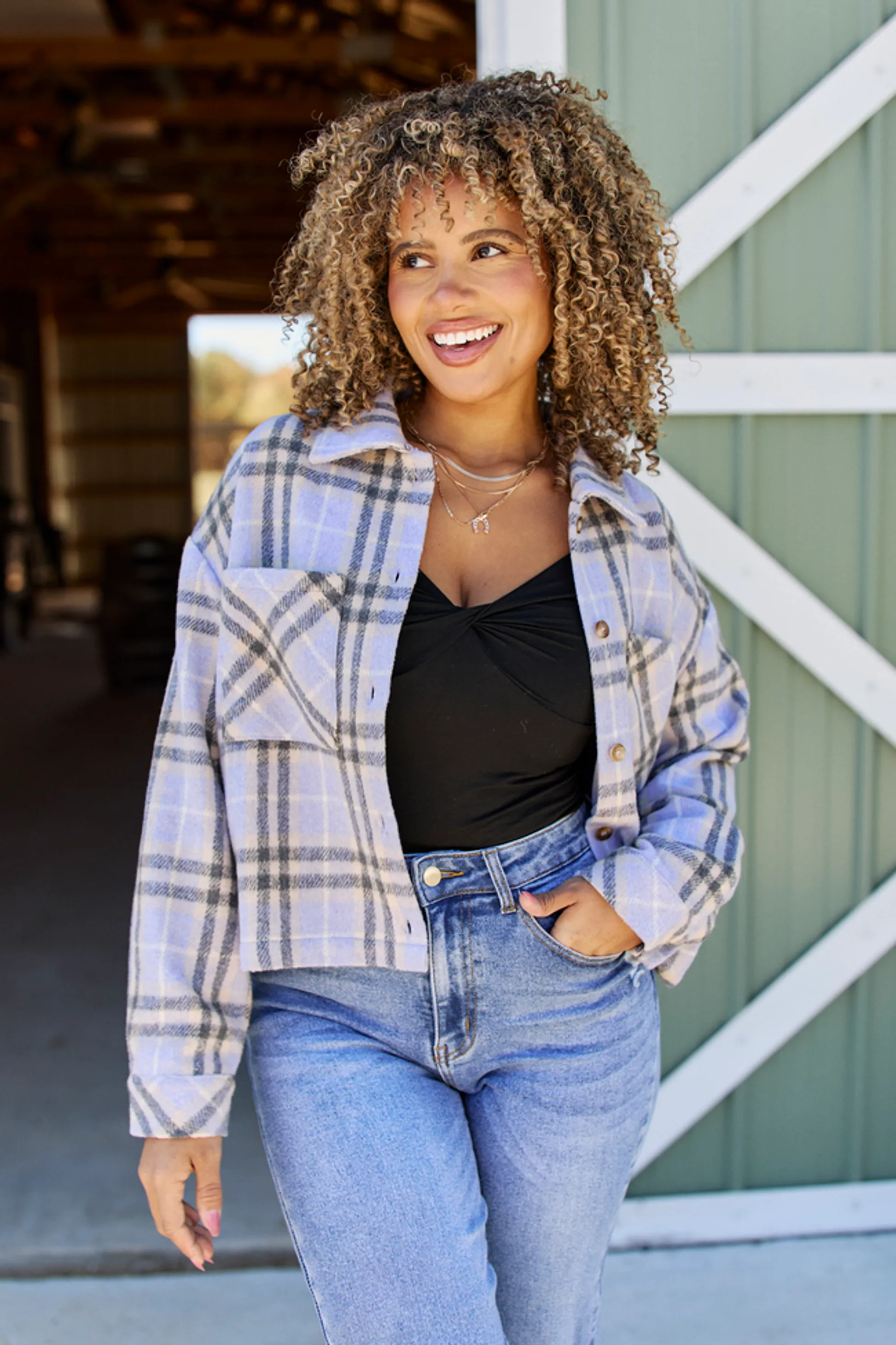 - Functional button up closure