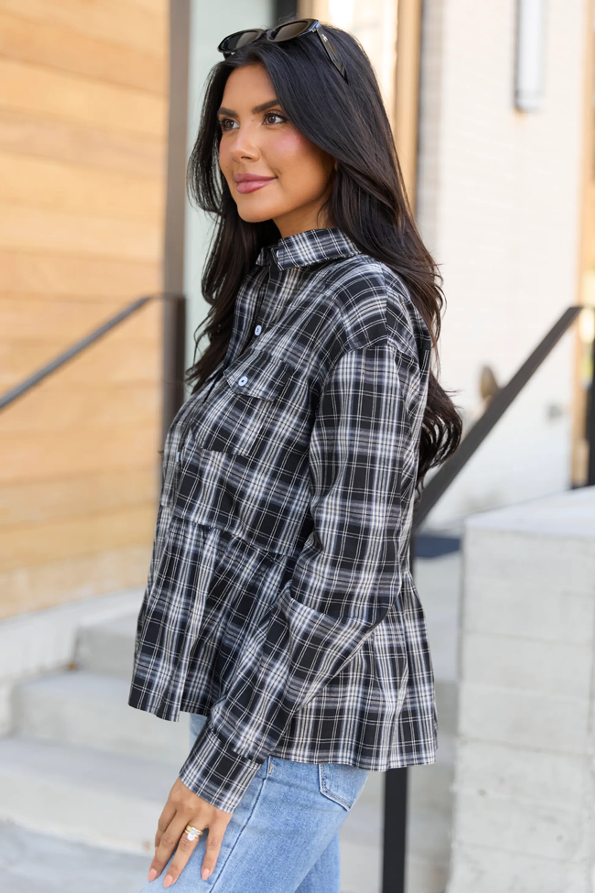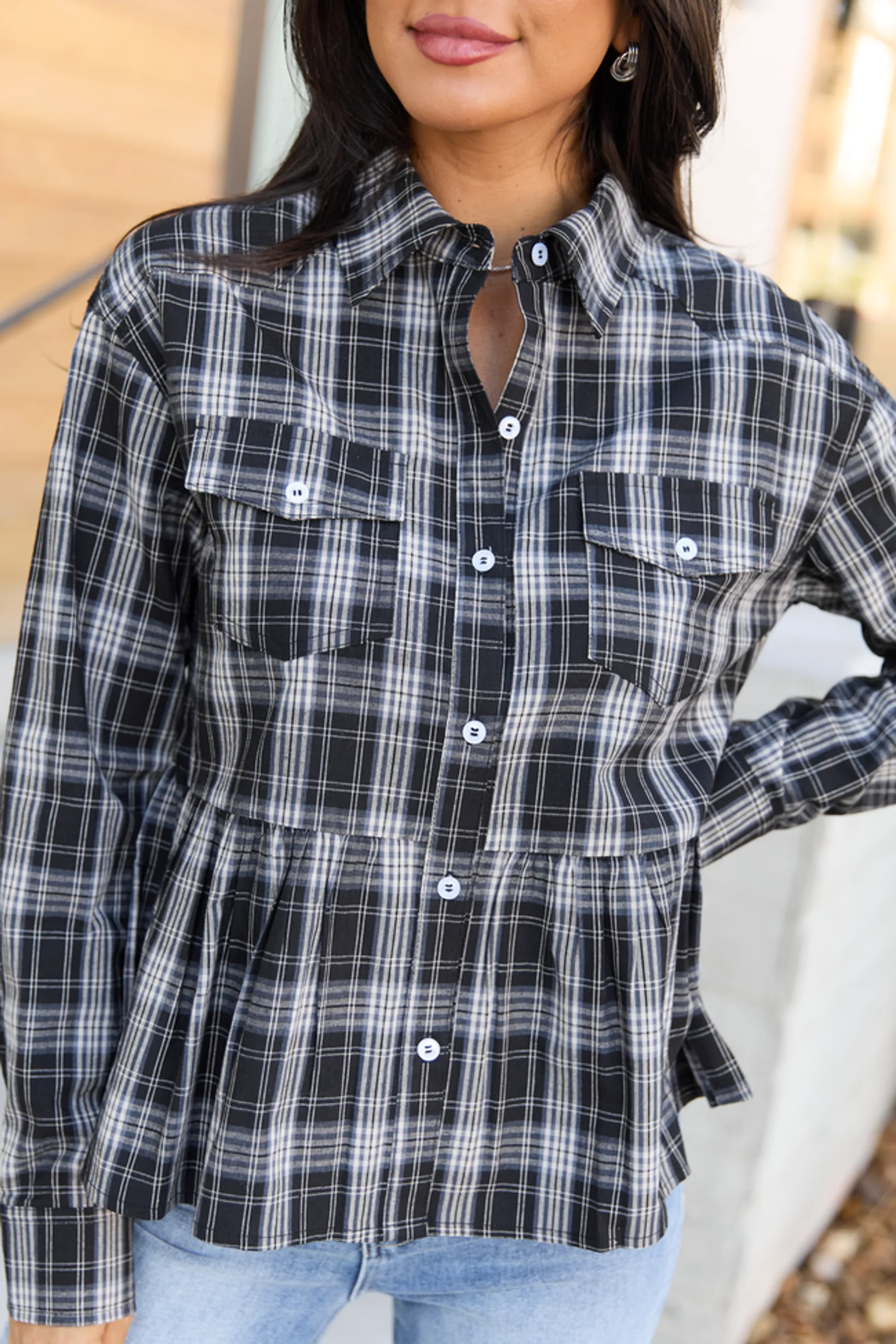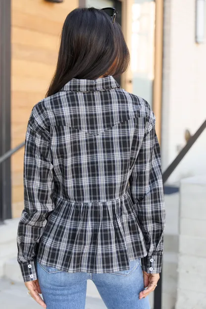 Black Plaid Peplum Top