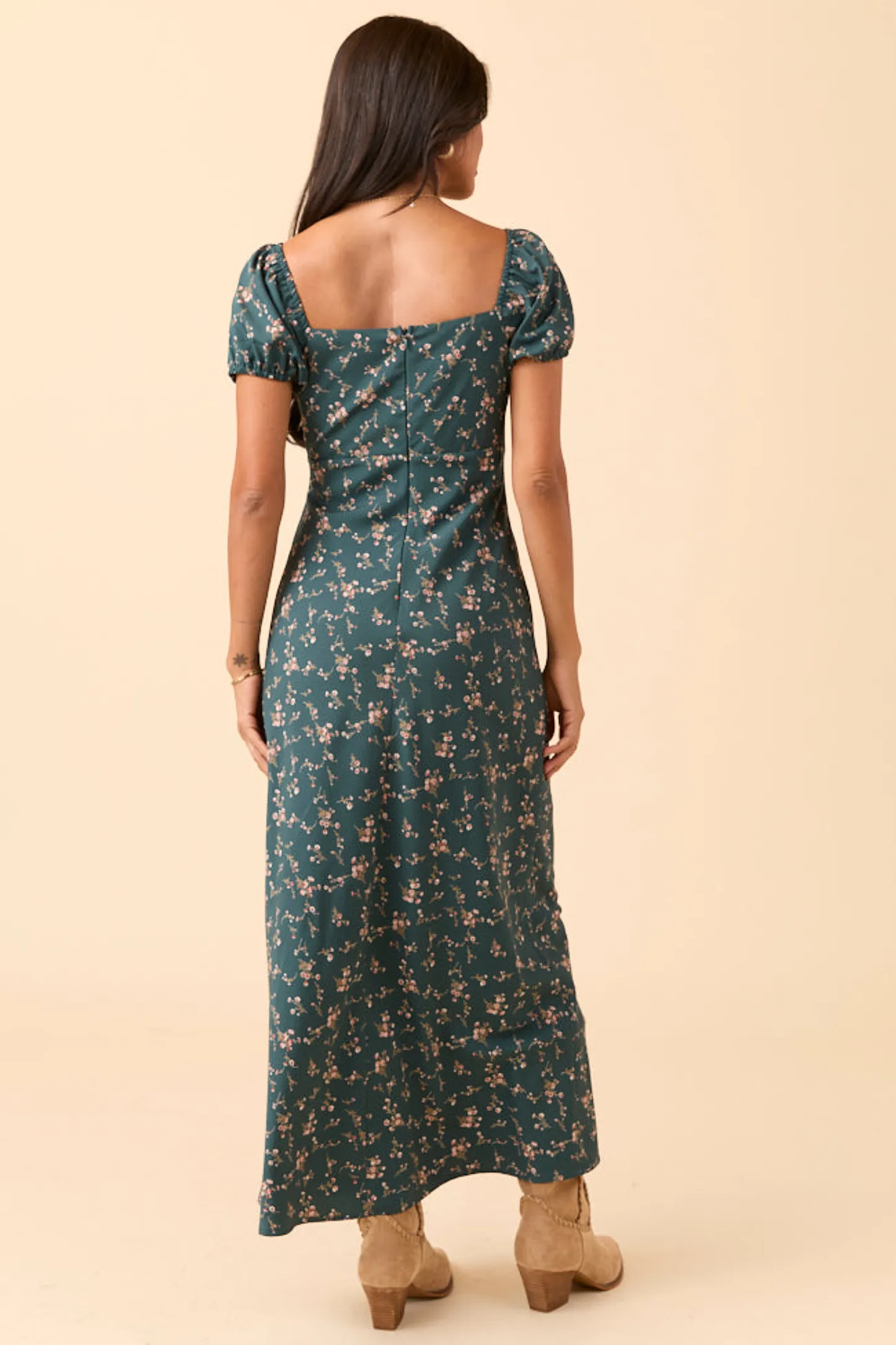 - Back zipper closure