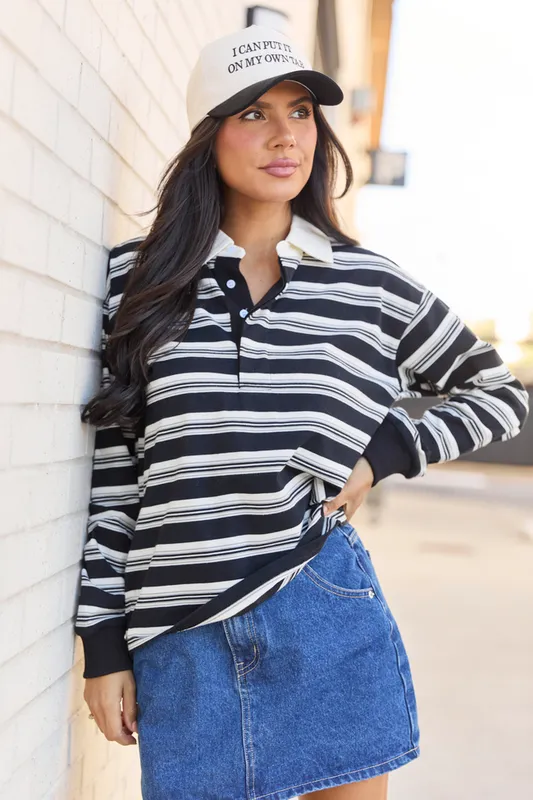 Black Striped Collared Pullover