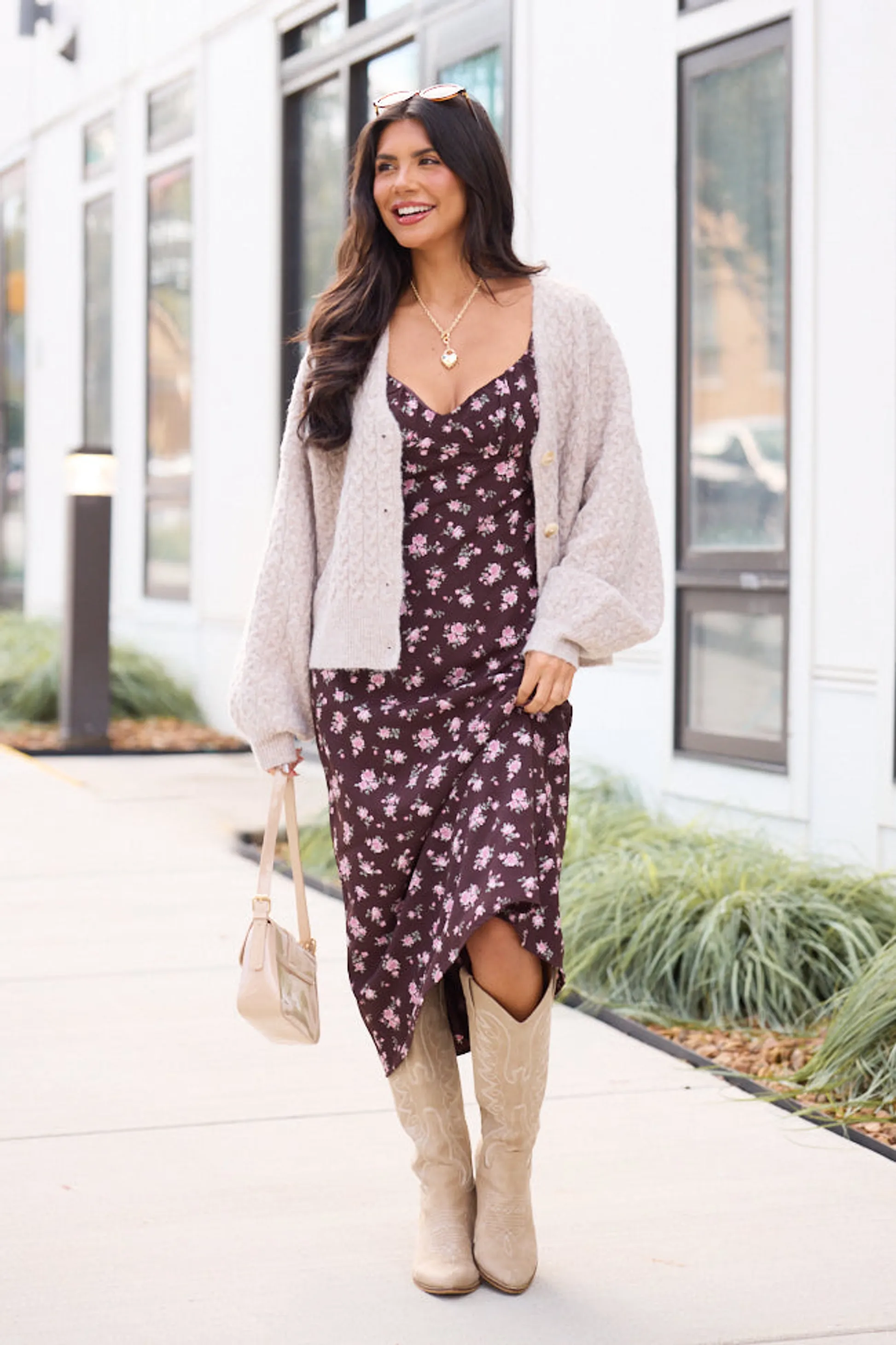 Tan V-Neck Cardigan