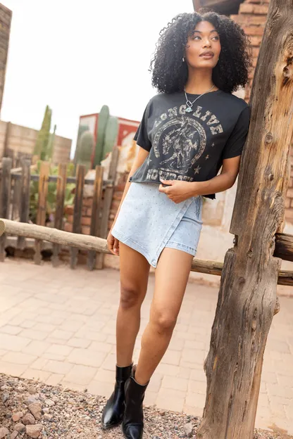 - Faux wrap with side zipper closure