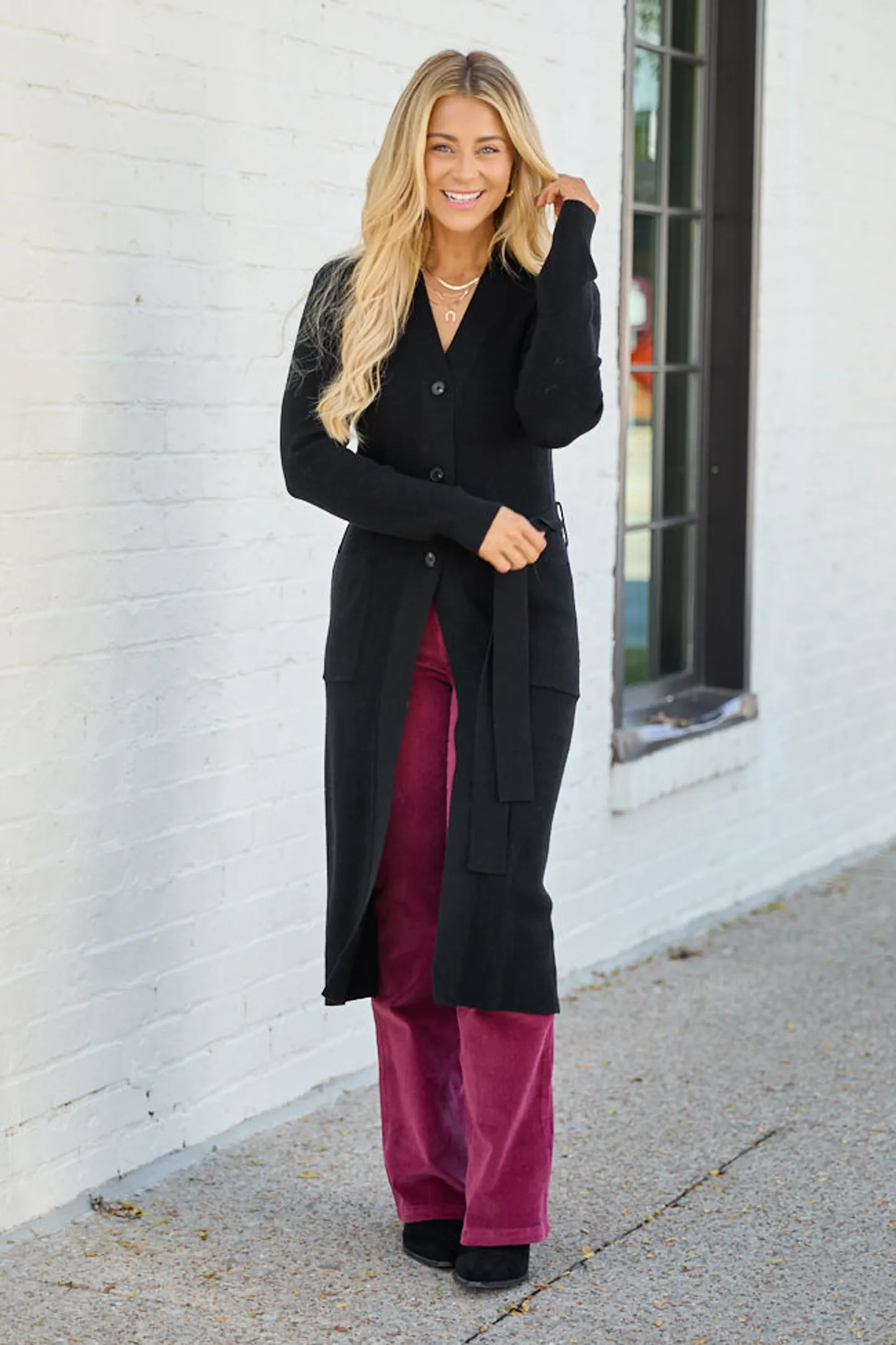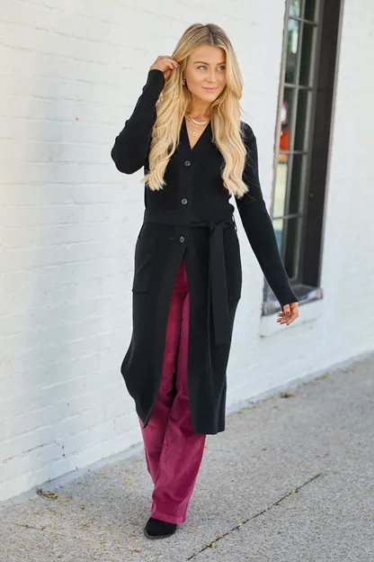 Black Button Down with Tie Long Cardigan