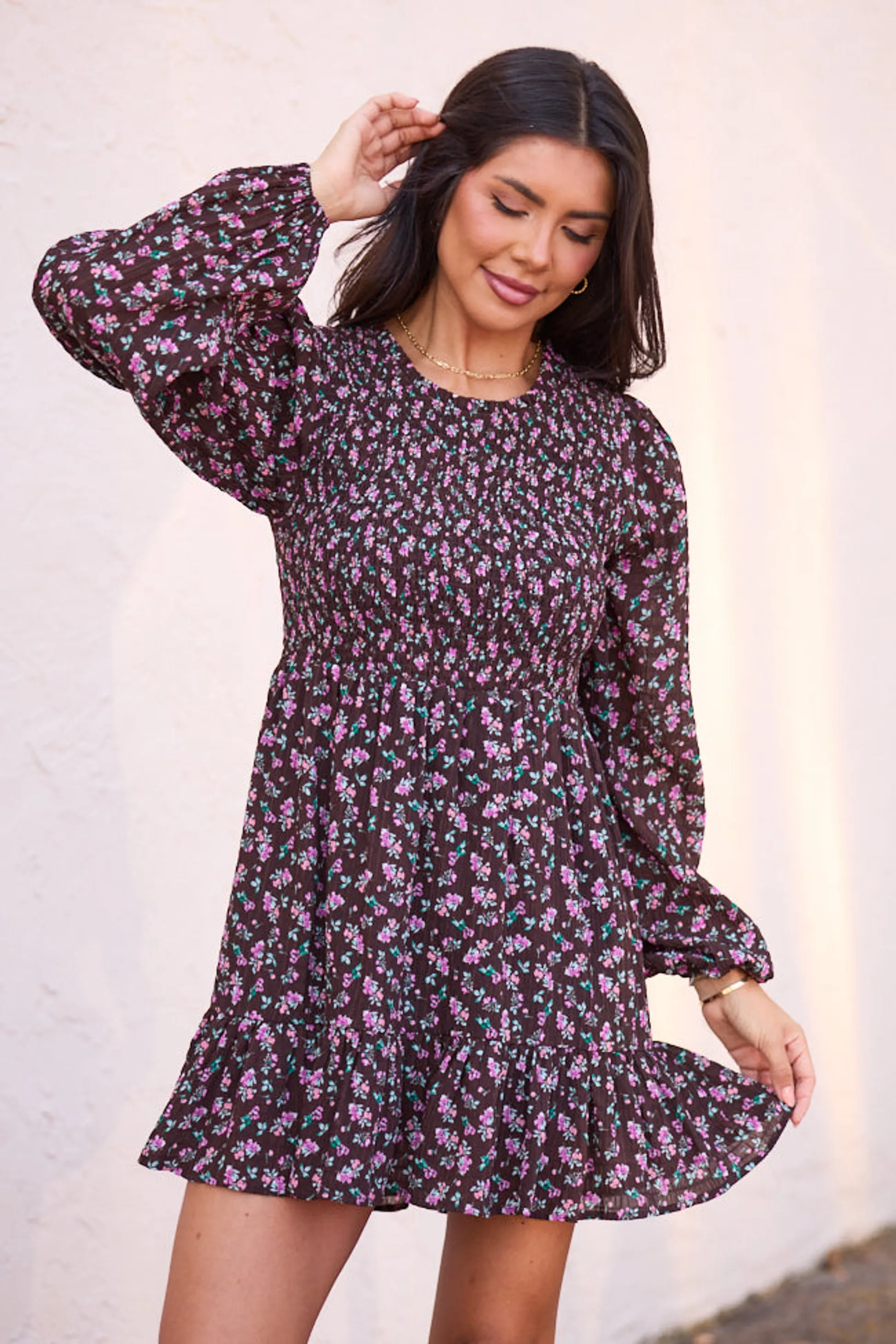 - Fabric only has stretch in smocking