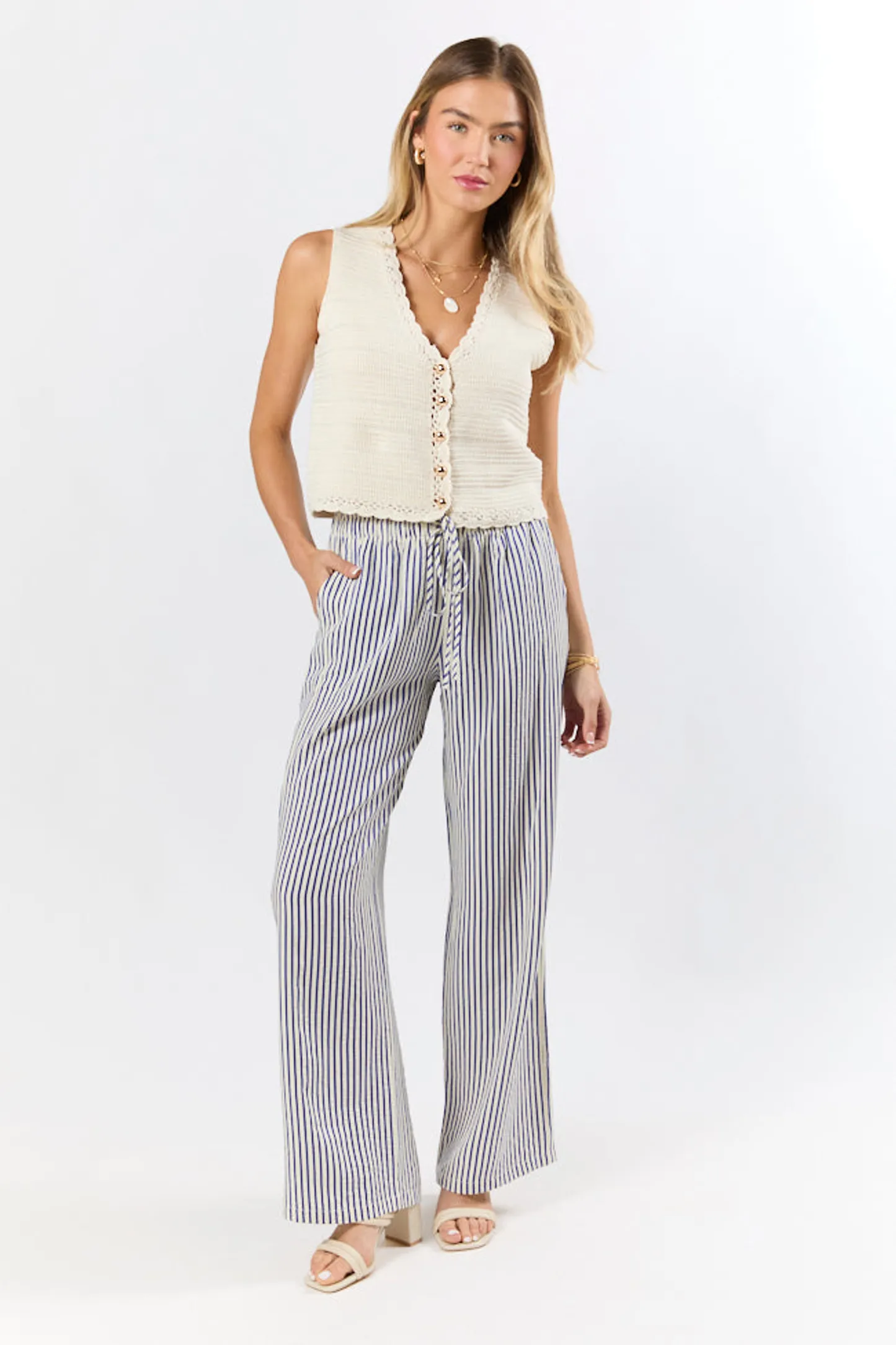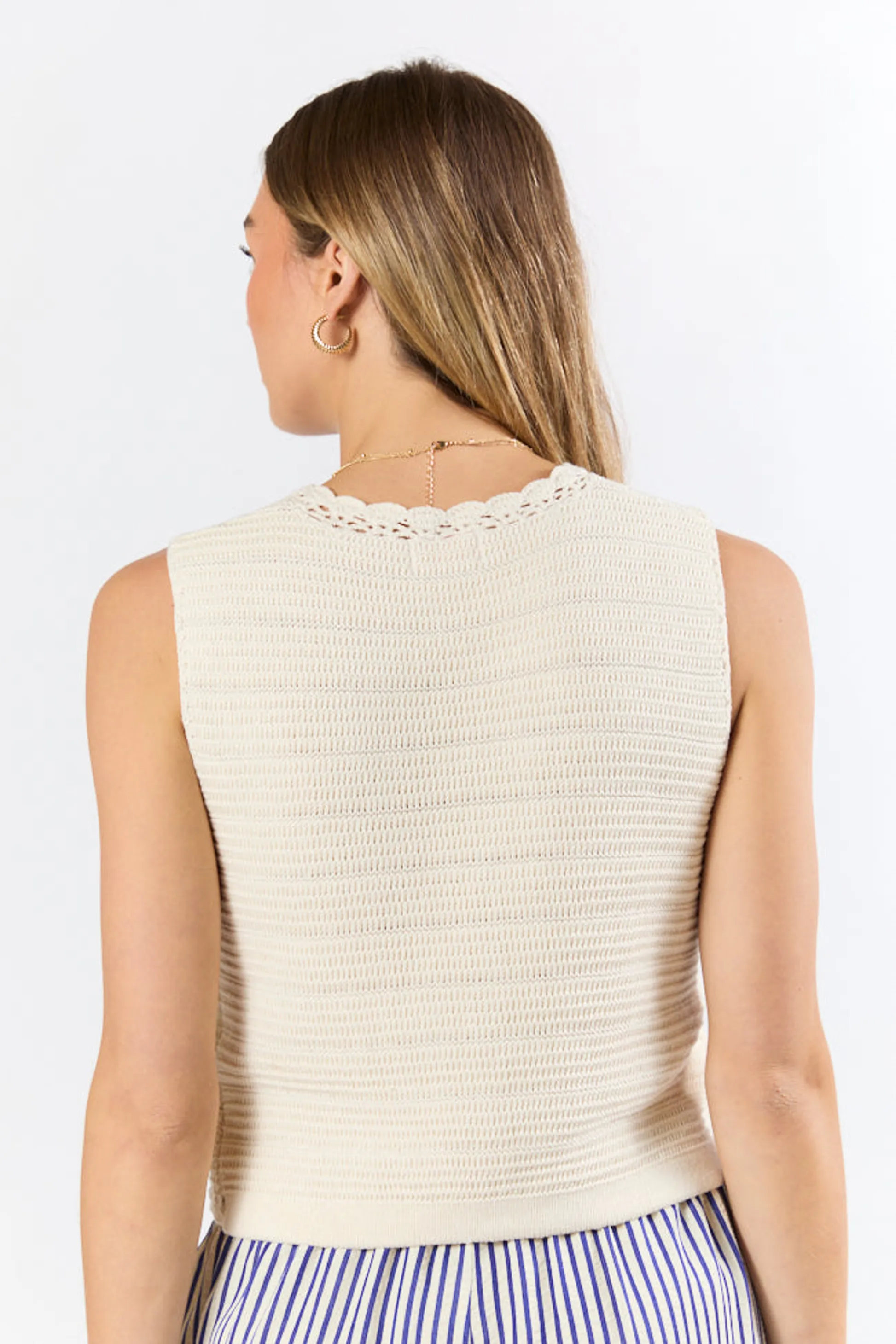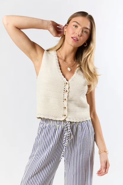 - Beige Crochet Sweater Tank Vest