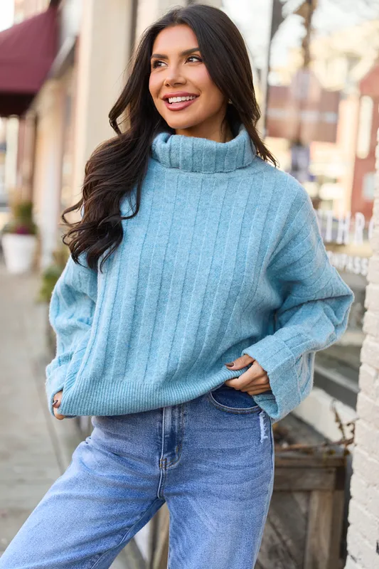 Baby Blue Cropped Turtleneck Sweater