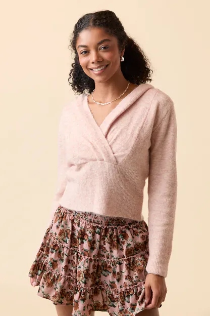 - Deep v-neckline