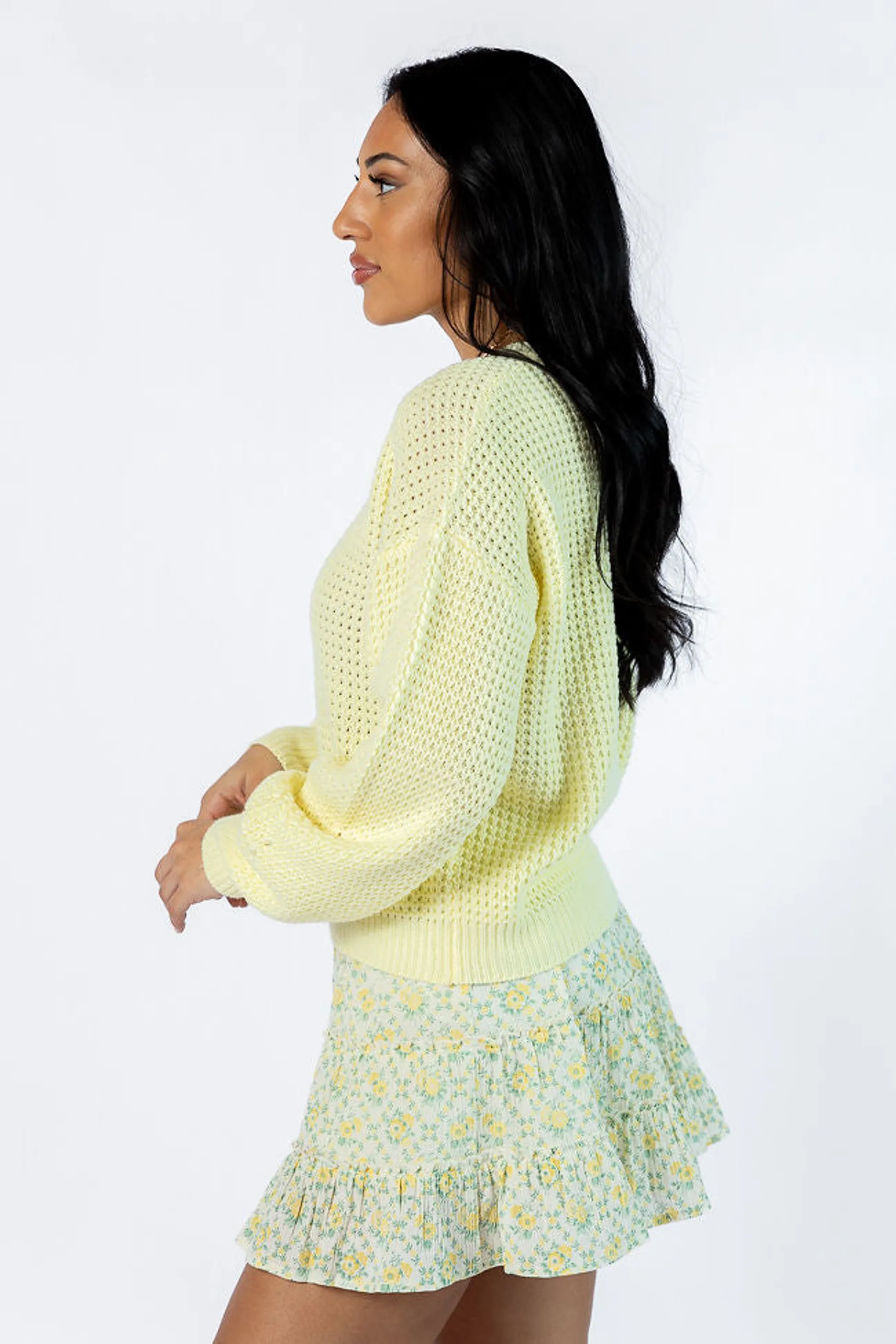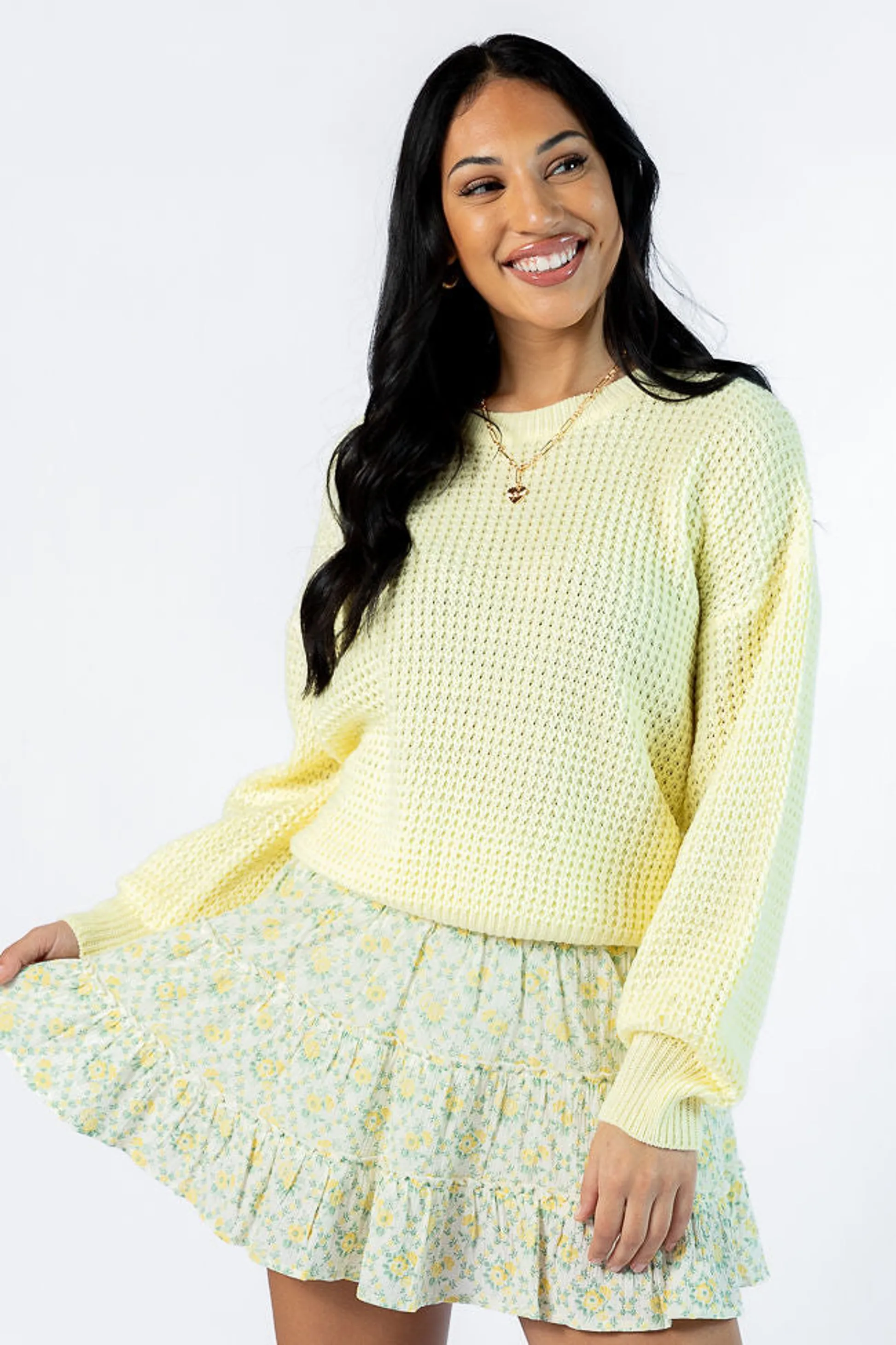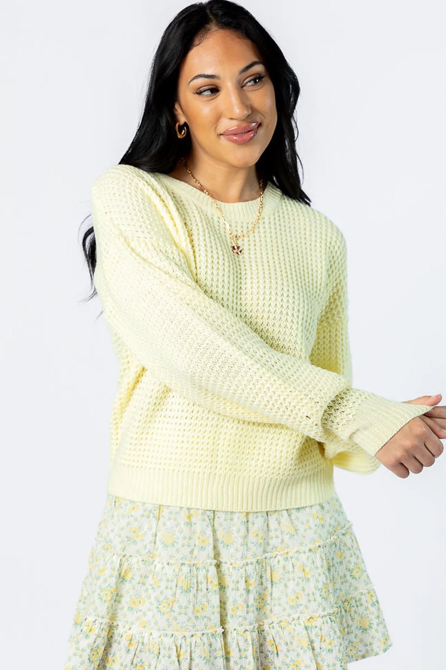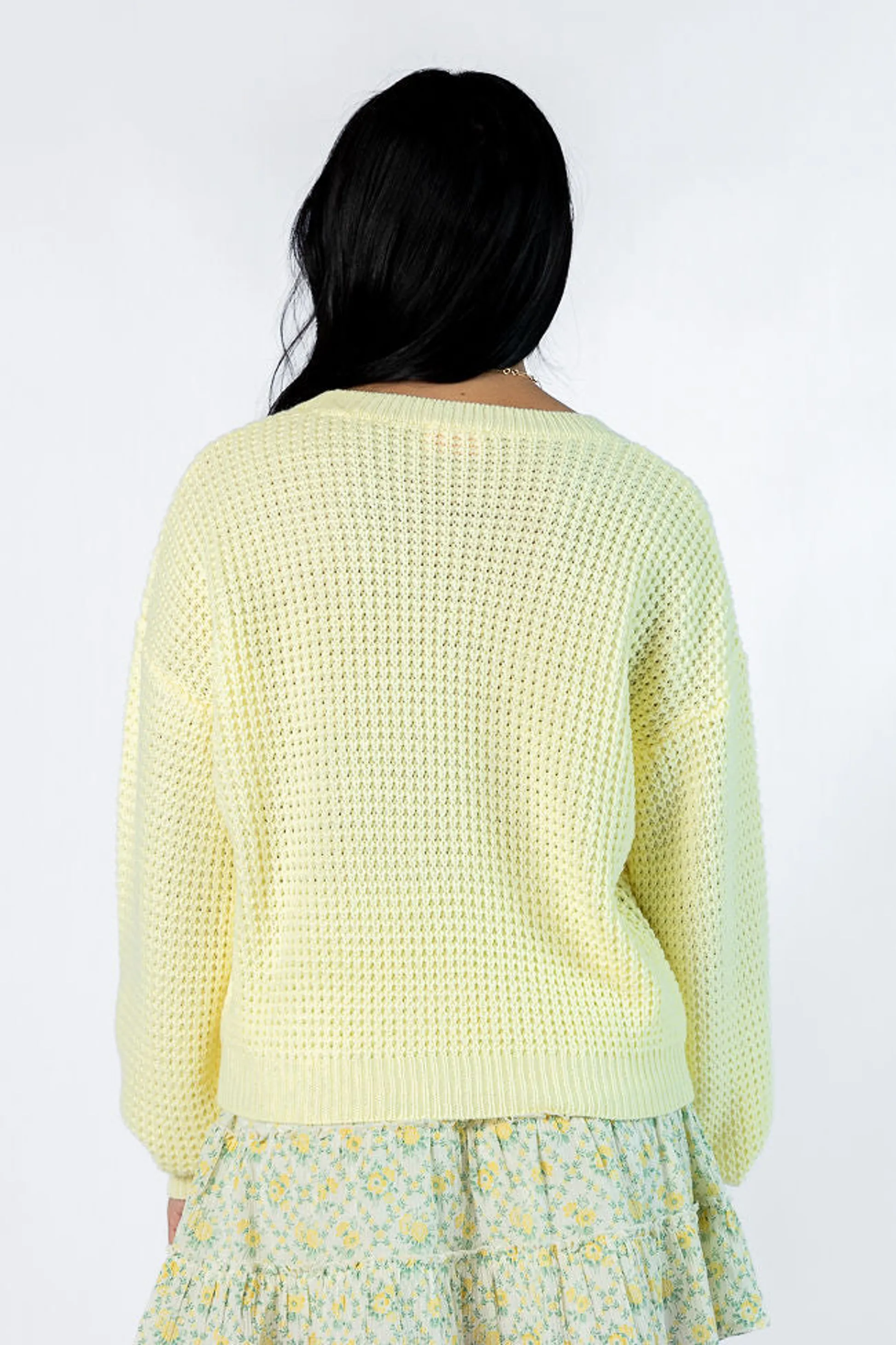 - Yellow Textured Crew Neck Sweater